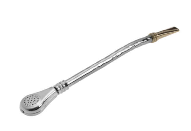 Metal bombilla with a round infuser. Traditionally used as a drinking straw for Yerbe Mate.