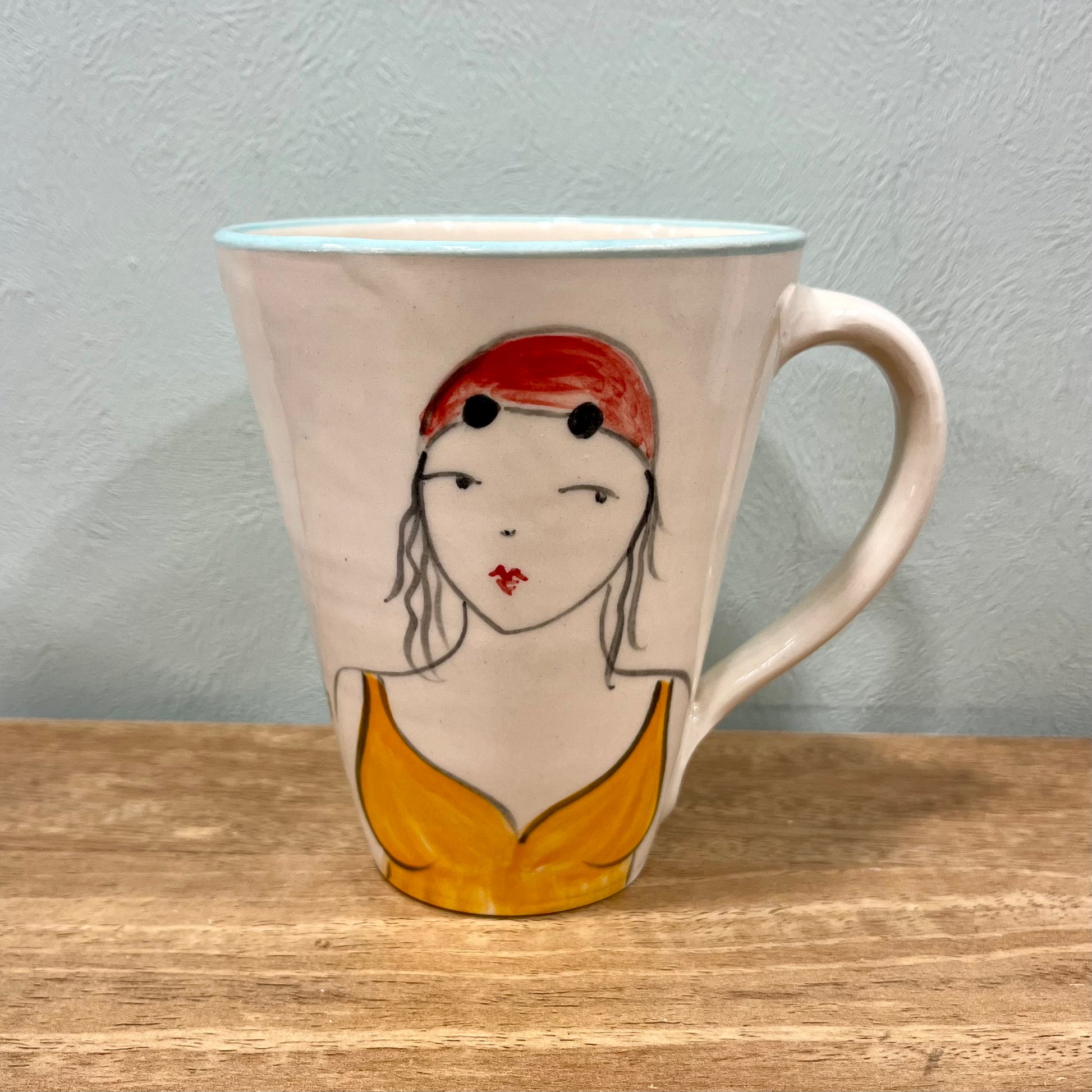 These beautifully crafted ceramic mugs are very accomplished pieces and decorated with unique wild swimming inspired illustrations. Each piece is handmade and painted with illustrations of vintage costumed bathers in the ocean.