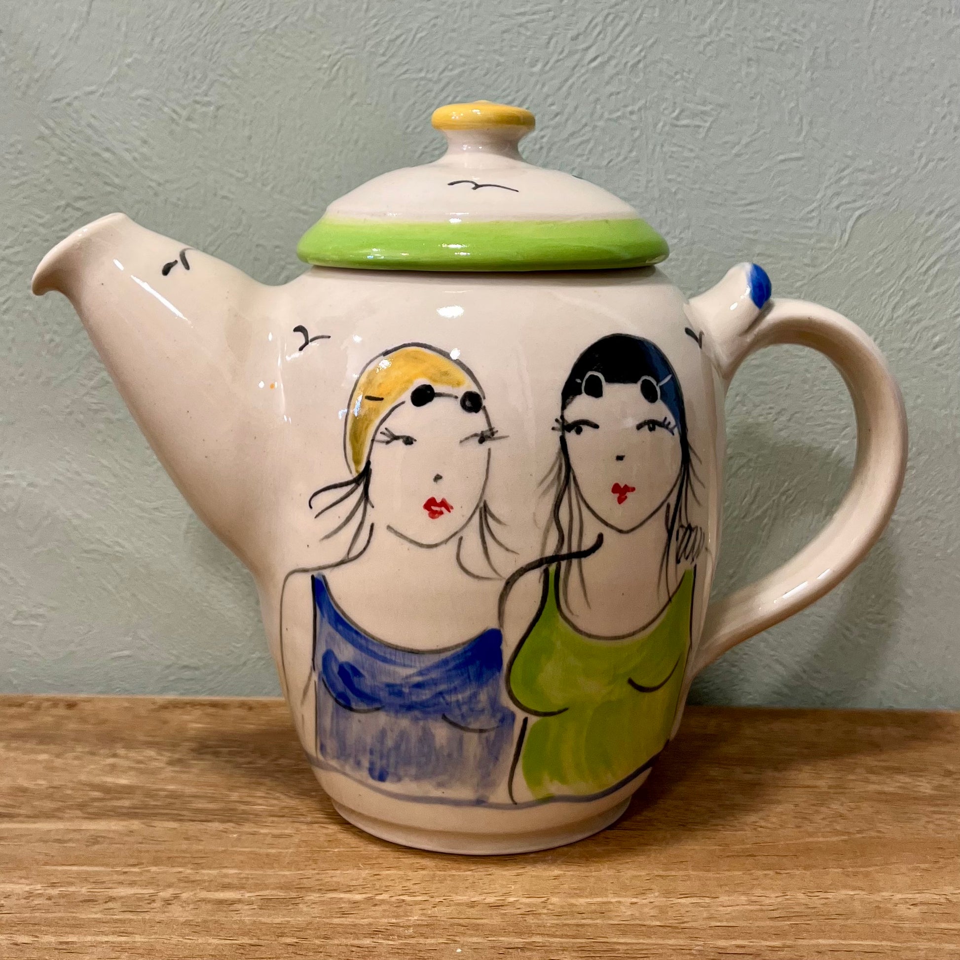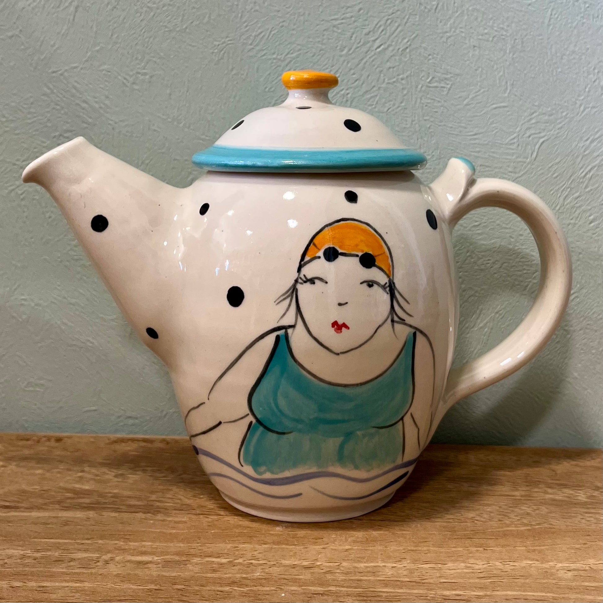 These beautifully crafted ceramic teapots are very accomplished pieces and decorated with unique wild swimming inspired illustrations. Each piece is hand-painted with illustrations of vintage costumed bathers in the ocean.