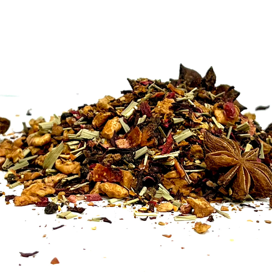 Indulge in the warmth and festive flavours of Chilli Christmas Fruit Tea! This loose infusion is both rich and caffeine-free, bursting with fruity notes and a subtle kick of chilli. The addition of whole cloves and Star Anise adds a spicy balance, creating a unique and satisfying infusion experience. Add a little spice to your holiday season with Chilli Christmas!